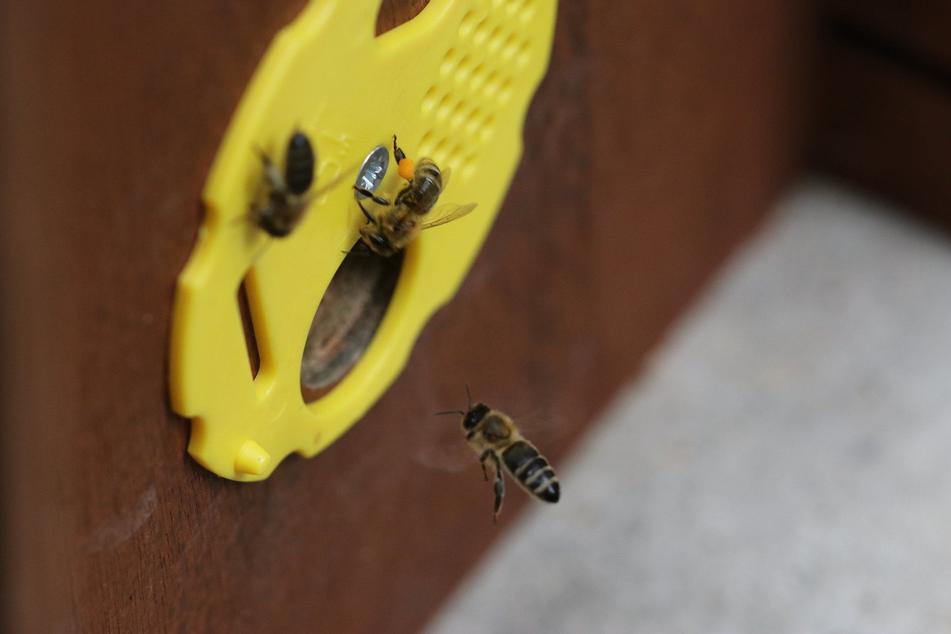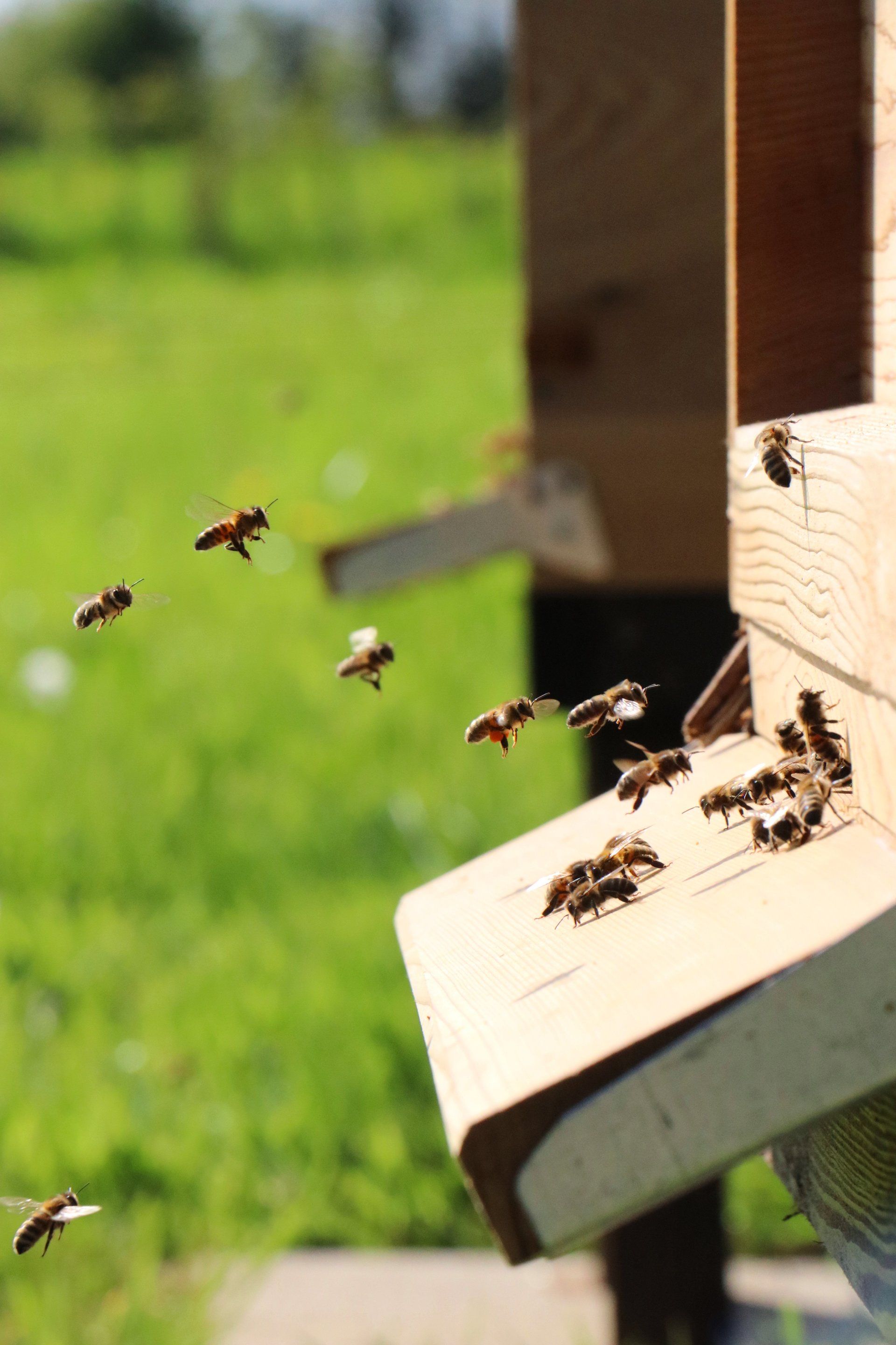 A drone returning to a nuc (mini hive)